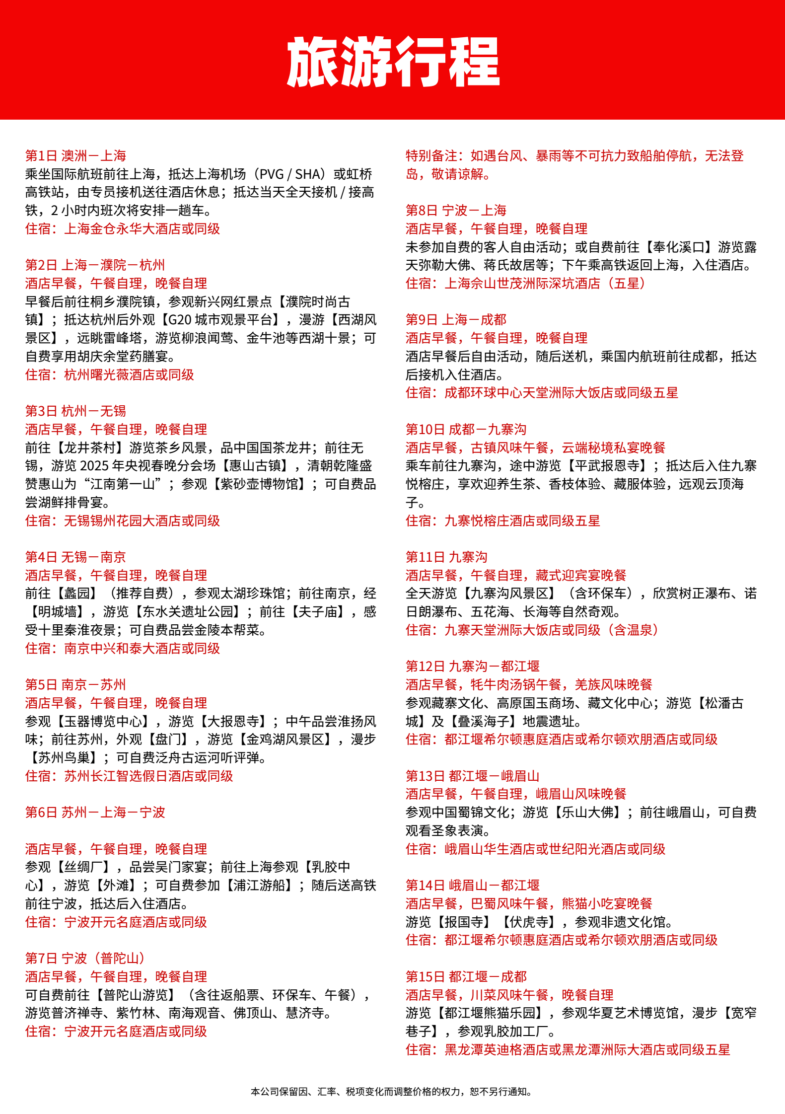 第16日 成都-澳洲 酒店早餐,无午餐,无晚餐